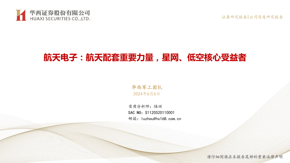 【华西证券】【20240606】航天电子(600879)航天配套重要力量,星网、低空核心受益者-32页