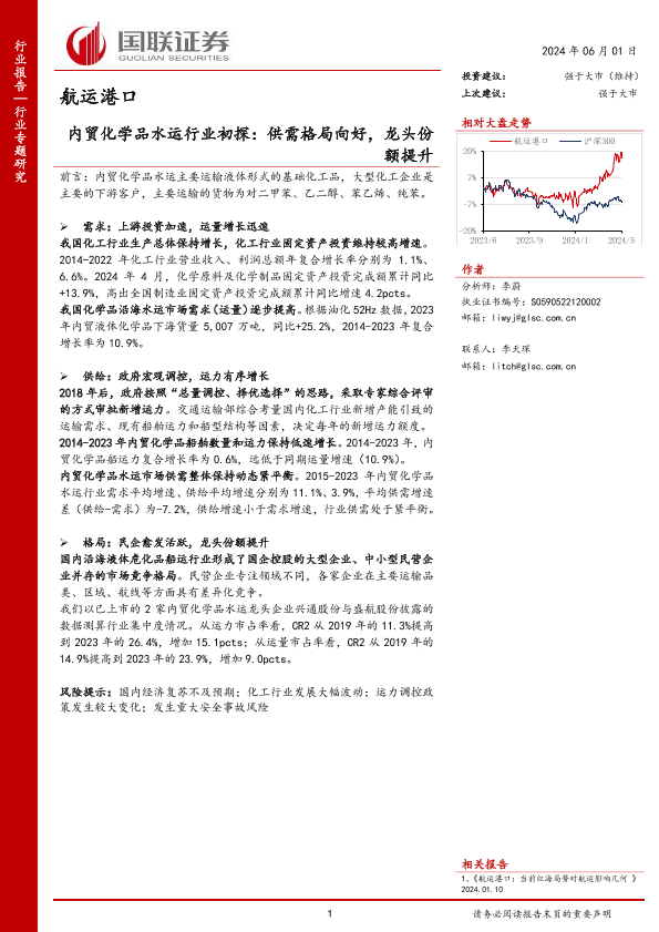 【国联证券】【20240601】航运港口行业专题研究:内贸化学品水运行业初探,供需格局向好,龙头份额提升-13页