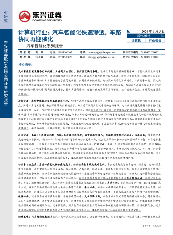 【东兴证券】【20240605】计算机行业汽车智能化系列报告:汽车智能化快速渗透,车路协同再迎催化-23页