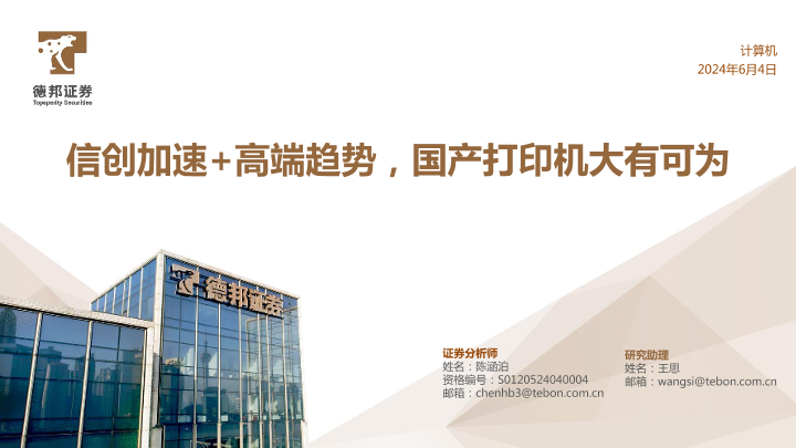 【德邦证券】【20240604】计算机行业专题:信创加速+高端趋势,国产打印机大有可为-30页
