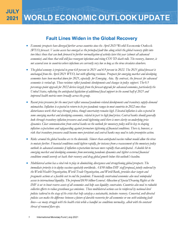 【International Monetary Fund】【20210701】2021年7月世界经济展望报告-21页