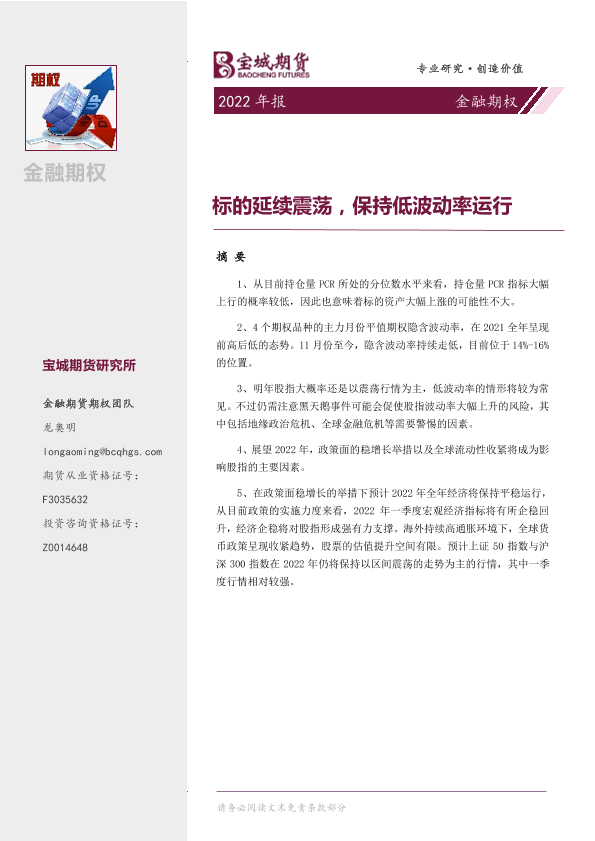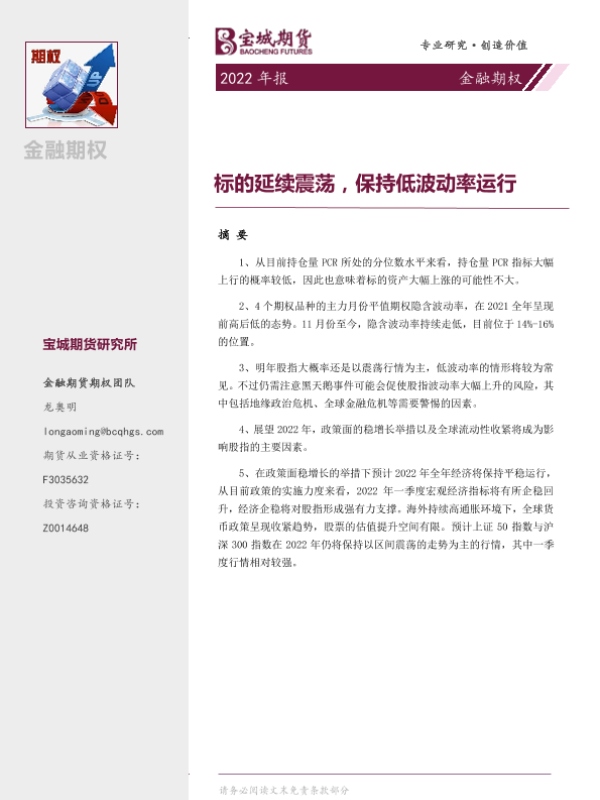 【宝城期货】【20211230】金融期权2022年报:标的延续震荡,保持低波动率运行-19页