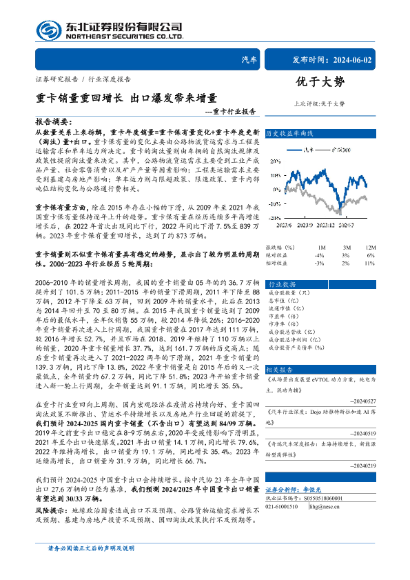 【东北证券】【20240602】重卡销量重回增长出口爆发带来增量---重卡行业报告-30页