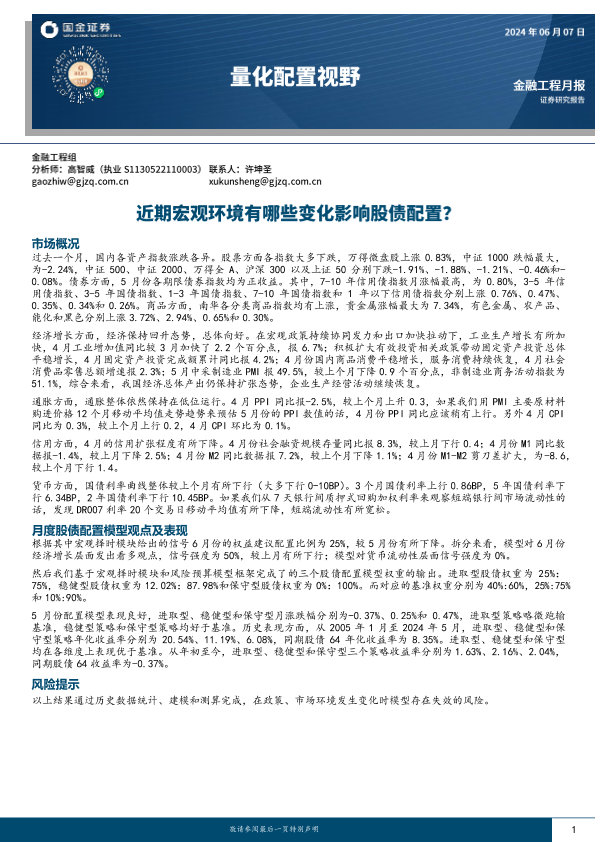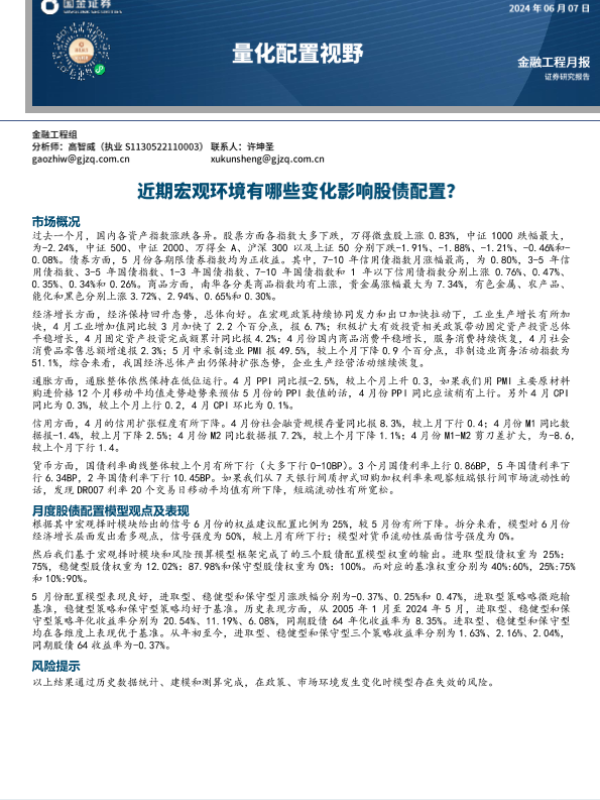 【国金证券】【20240607】量化配置视野:近期宏观环境有哪些变化影响股债配置?-10页