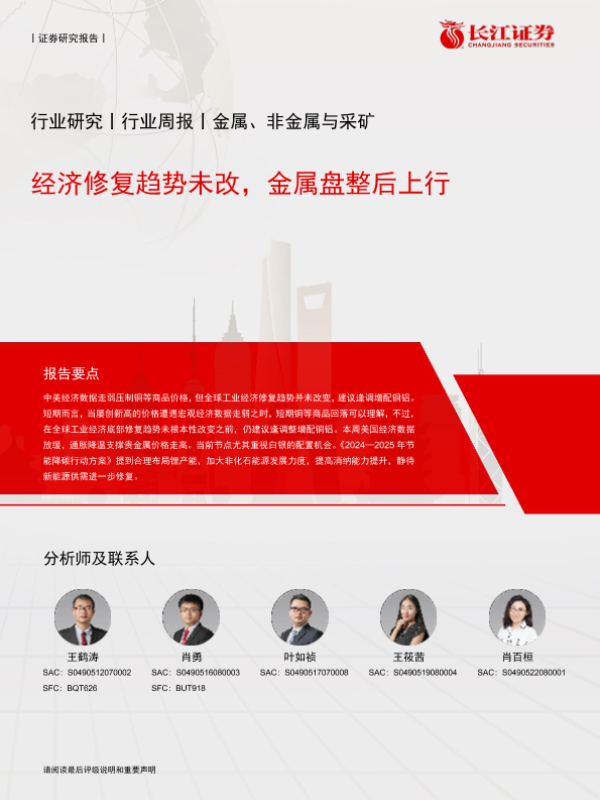 【长江证券】【20240602】金属、非金属与采矿行业:经济修复趋势未改,金属盘整后上行-12页