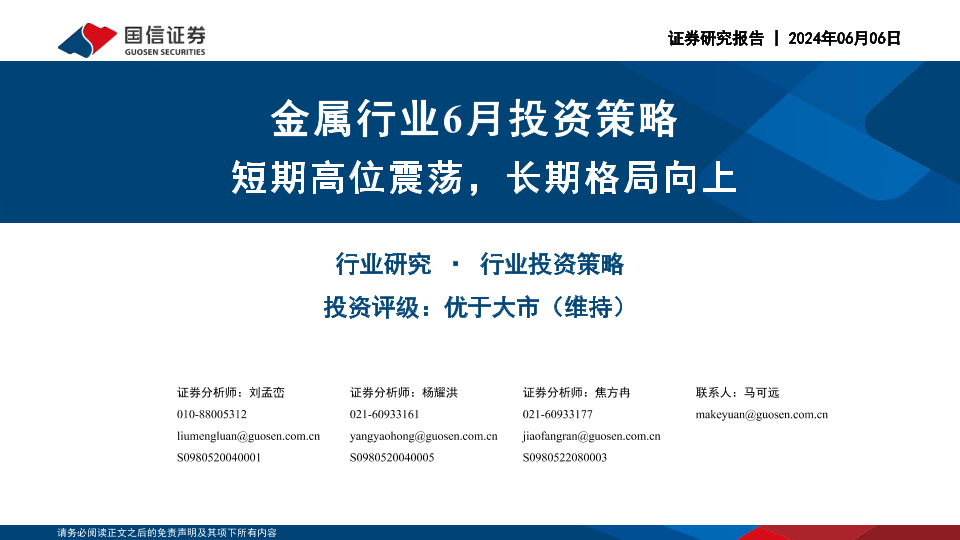 【国信证券】【20240606】金属行业6月投资策略:短期高位震荡,长期格局向上-28页