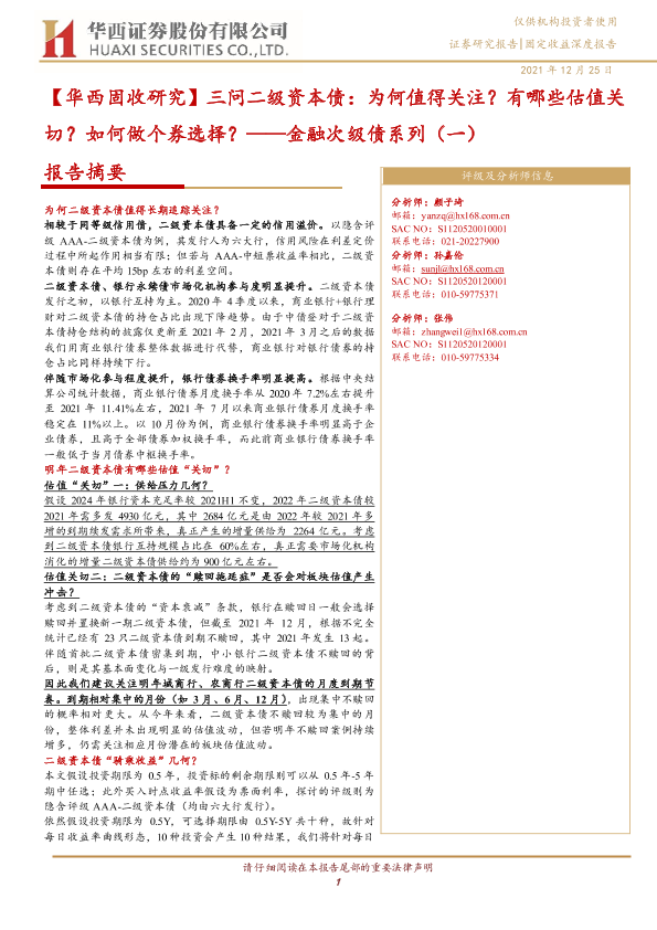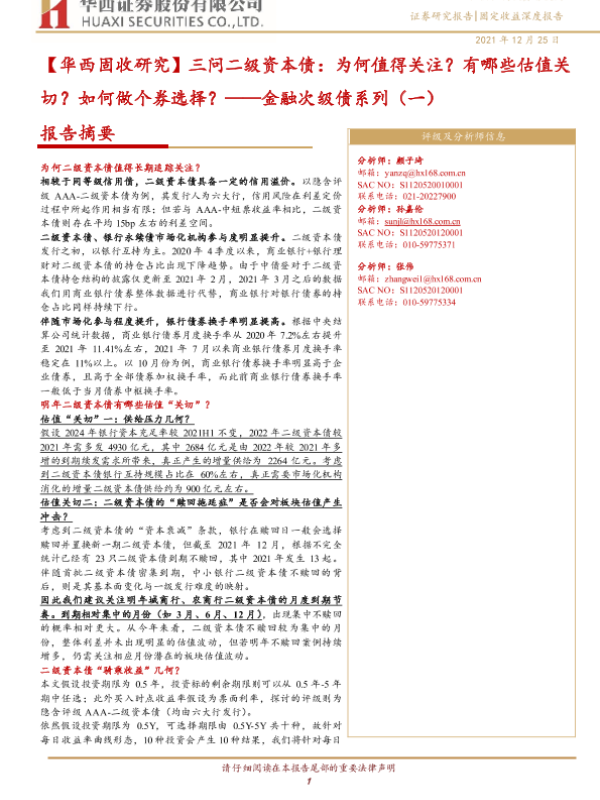 【华西证券】【20211225】金融次级债系列(一):三问二级资本债,为何值得关注?有哪些估值关切?如何做个券选择?-17页