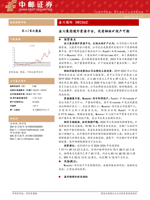 【中邮证券】【20240604】金川国际(2362.HK)金川集团境外资源平台,优质铜钴矿投产可期-18页
