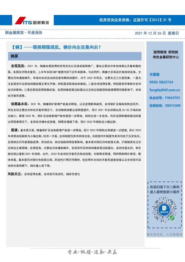 【国贸期货】【20211226】铜金属期货年度报告:弱预期强现实,铜价向左还是向右?-26页
