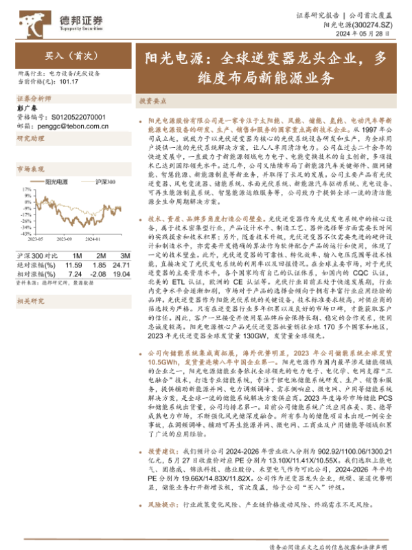 【德邦证券】【20240528】阳光电源:全球逆变器龙头企业,多维度布局新能源业务-40页