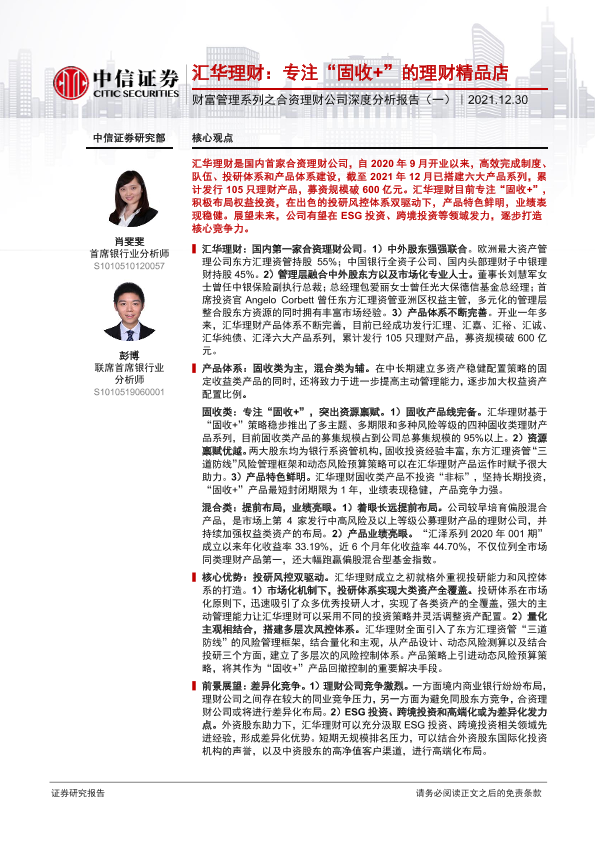 【中信证券】【20211230】银行业财富管理系列之合资理财公司深度分析报告(一):汇华理财,专注“固收+”的理财精品店-16页