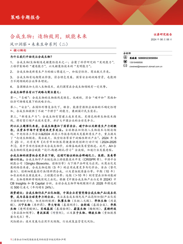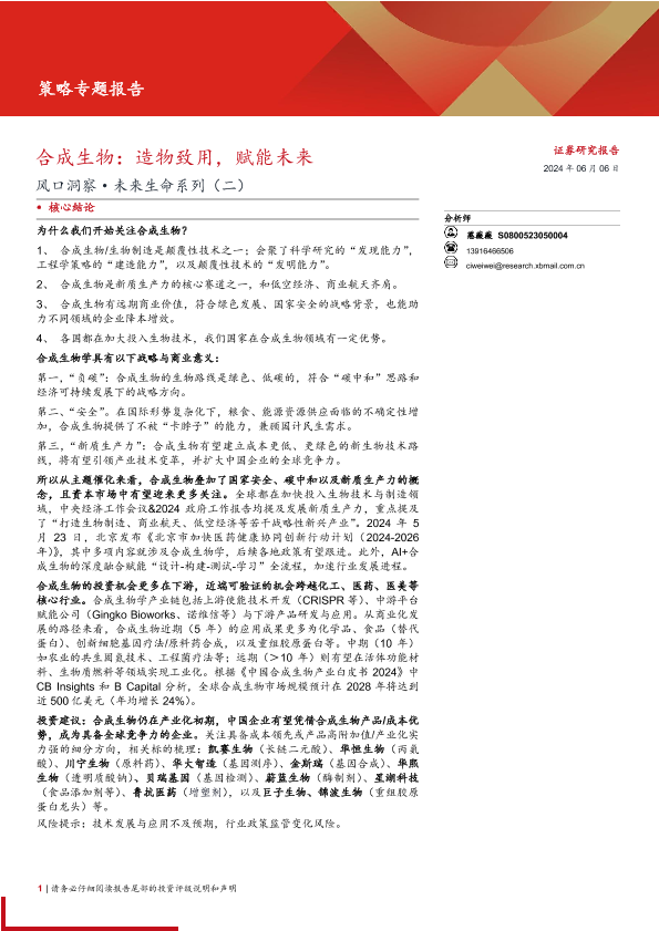 【西部证券】【20240606】风口洞察·未来生命系列(二)-合成生物:造物致用,赋能未来-14页
