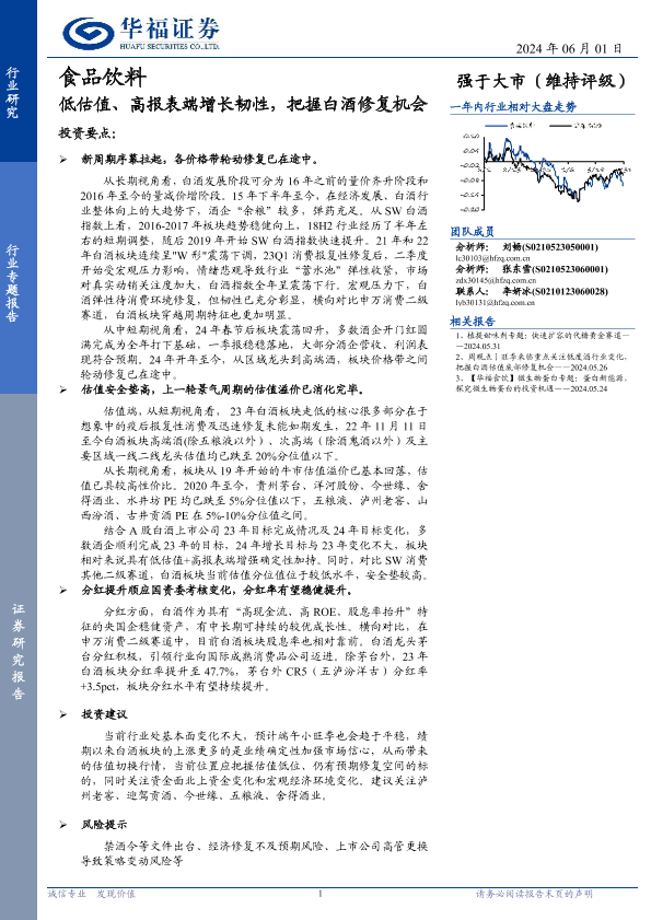【华福证券】【20240601】食品饮料行业专题报告:低估值、高报表端增长韧性,把握白酒修复机会-15页