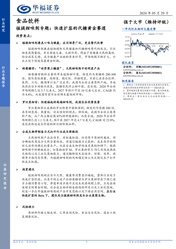 【华福证券】【20240529】食品饮料行业植提甜味剂专题:快速扩容的代糖黄金赛道-12页
