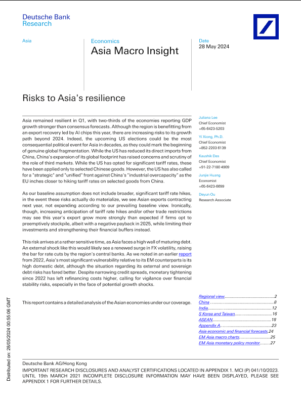 【Deutsche Bank Research】【20240528】Deutsche Bank-Asia Macro Insight Risks to Asia's resilience-38页