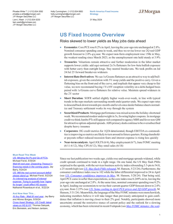 【J.P. Morgan】【20240531】JPMorgan Econ FI-US Fixed Income Overview Risks skewed to lower yields as May-12页