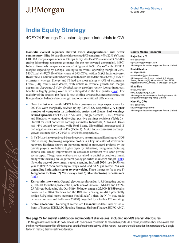 【J.P. Morgan】【20240602】JPMorgan-India Equity Strategy 4QFY24 Earnings Dissector Upgrade Ind-26页