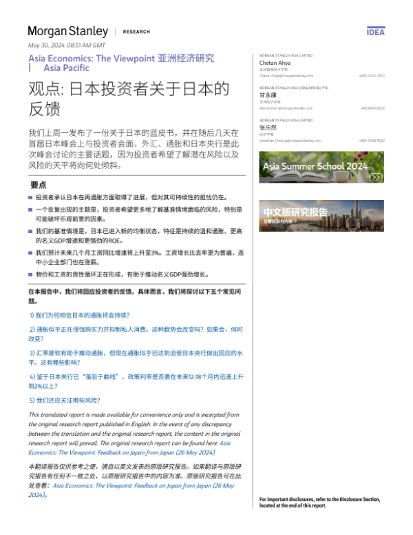 【Morgan Stanley】【20240526】亚洲经济研究 观点 日本投资者关于日本的反馈-11页
