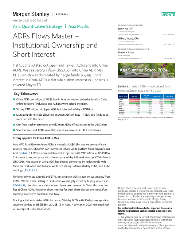 【Morgan Stanley】【20240527】Asia Quantitative Strategy | Asia Pacific ADRs Flows Master – Institutional Ownership and Short Interest-14页