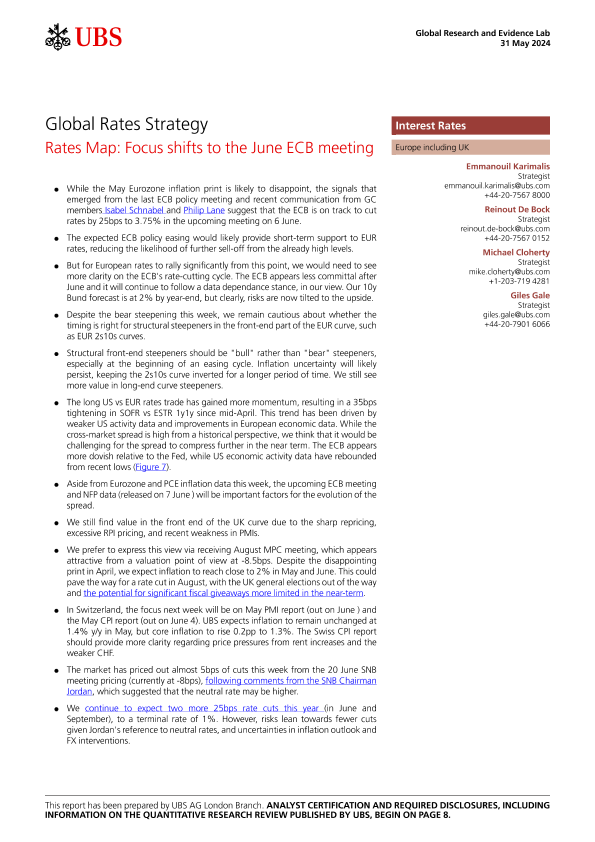 【UBS AG London Branch】【20240531】Rates Map Focus shifts to the June ECB meeting-11页