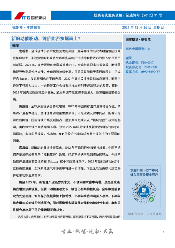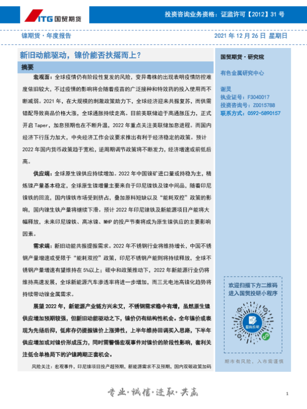 【国贸期货】【20211226】镍期货·年度报告:新旧动能驱动,镍价能否扶摇而上?-25页