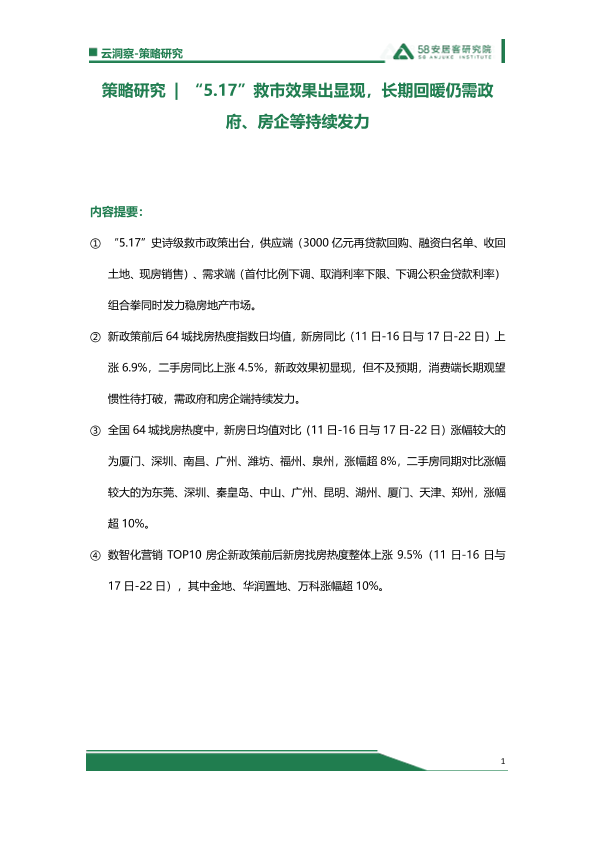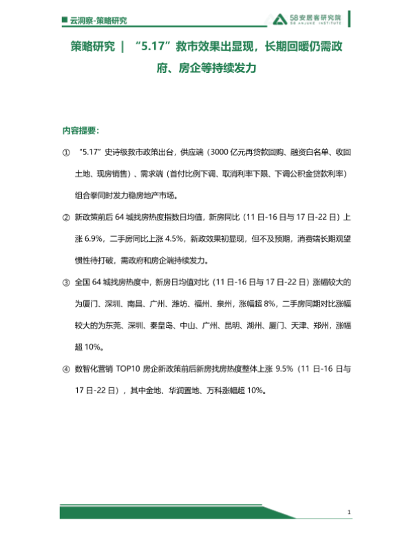 【云洞察-策略研究】【20240517】517救市效果出显现,长期回暖仍需政府、房企端持续发力-9页