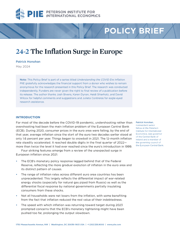 【彼得森经济研究所】【202405】欧洲的通货膨胀激增-16页