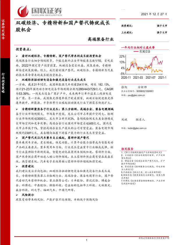 【国联证券】【20211227】高端装备行业:双碳经济、专精特新和国产替代铸就成长股机会-31页