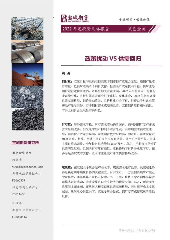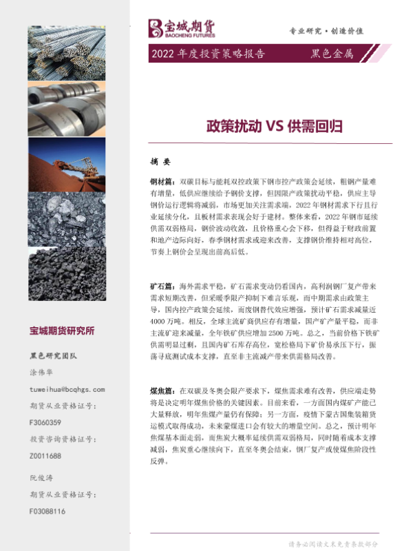 【宝城期货】【20211230】黑色金属2022年度投资策略报告:政策扰动VS供需回归-63页