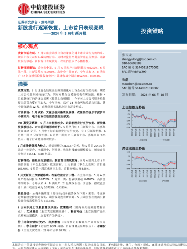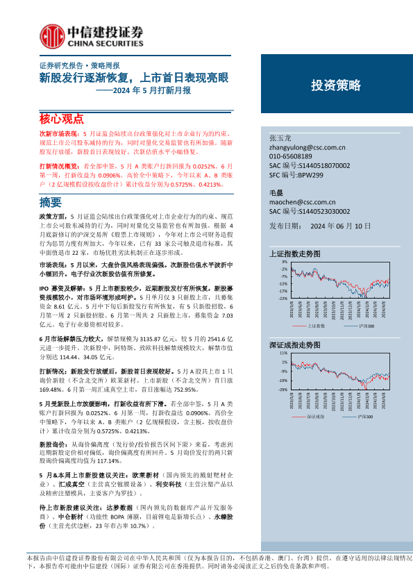 【中信建投证券】【20240610】2024年5月打新月报:新股发行逐渐恢复,上市首日表现亮眼-21页
