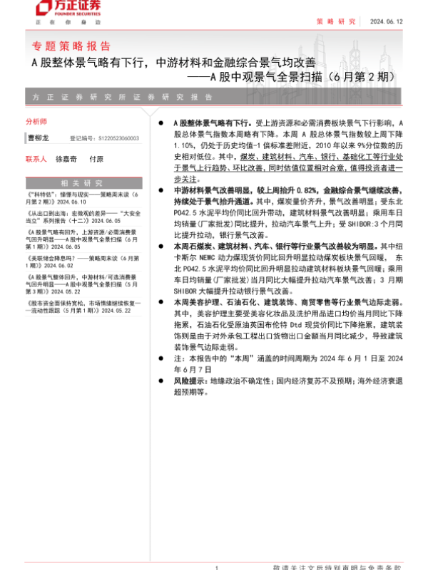 【方正证券】【20240612】A股中观景气全景扫描(6月第2期)-30页