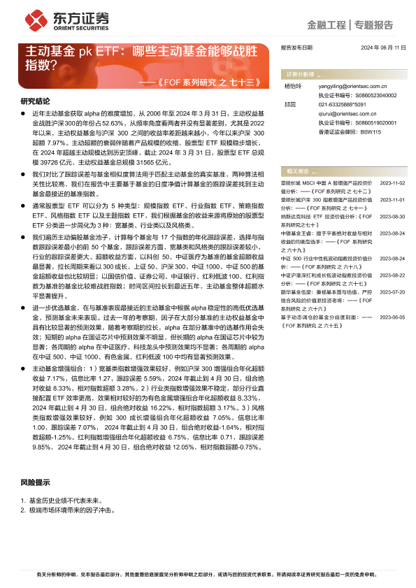 【东方证券】【20240611】FOF系列研究之七十三:主动基金pk+ETF,哪些主动基金能够战胜指数?-17页