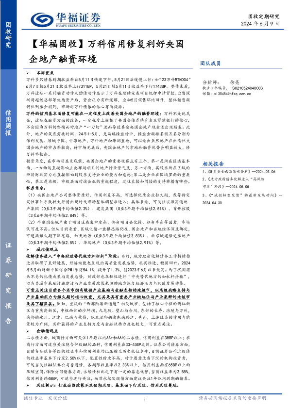 【华福证券】【20240609】【华福固收】万科信用修复利好央国企地产融资环境-23页