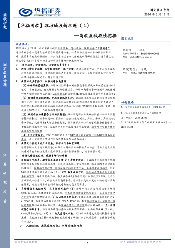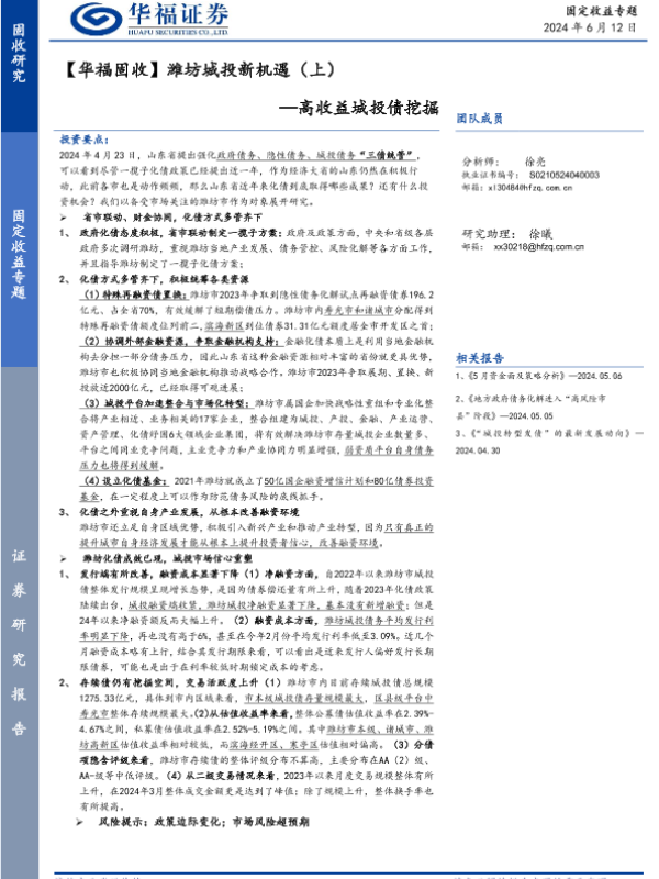 【华福证券】【20240612】【华福固收】潍坊城投新机遇(上):高收益城投债挖掘-10页
