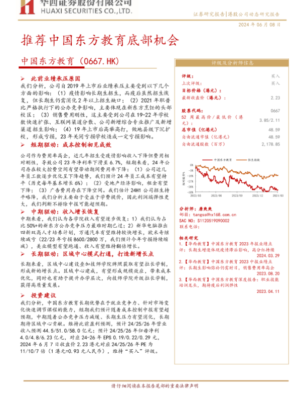 【华西证券】【20240608】中国东方教育(0667.HK)推荐中国东方教育底部机会-11页