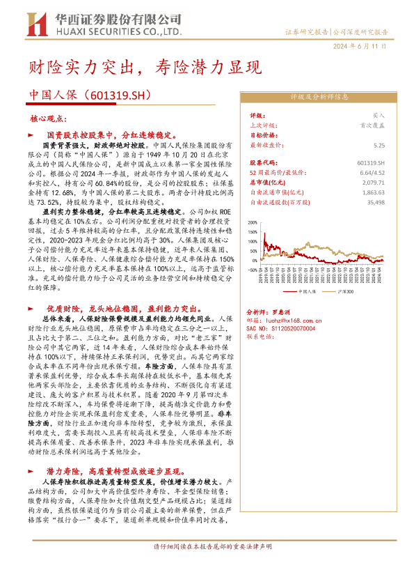 【华西证券】【20240611】中国人保(601319)财险实力突出,寿险潜力显现-24页
