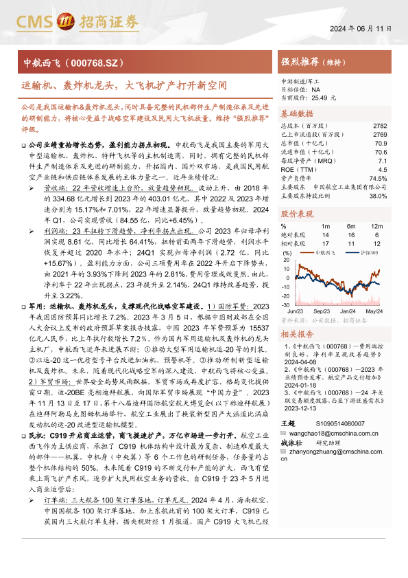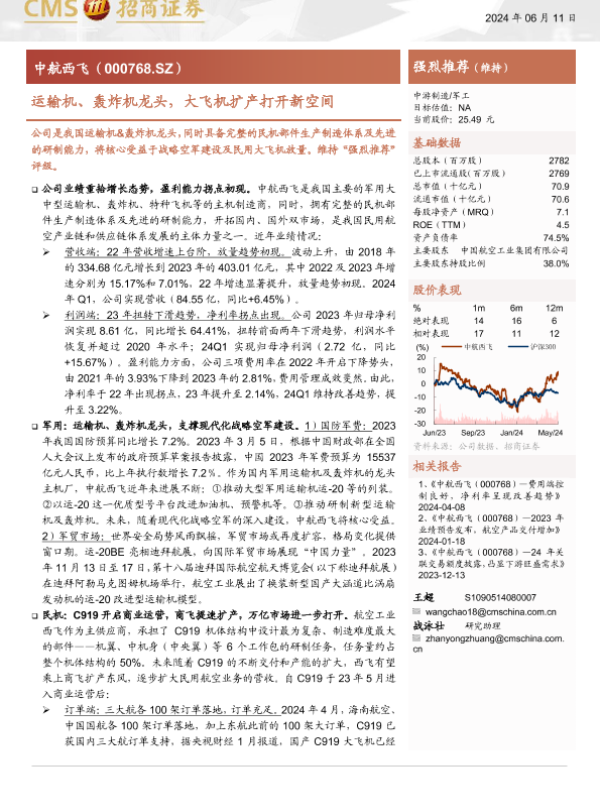 【海通证券】【20240611】中航西飞(000768)运输机、轰炸机龙头,大飞机扩产打开新空间-28页