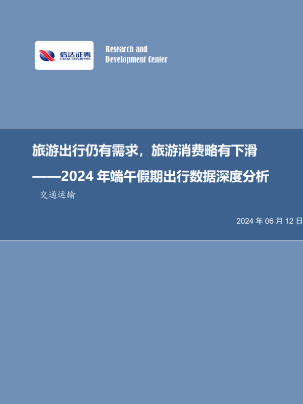 【信达证券】【20240612】旅游出行仍有需求,旅游消费略有下滑——2024年端午假期出行数据深度分析-12页