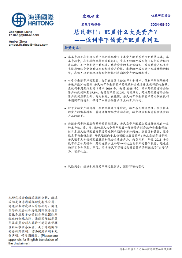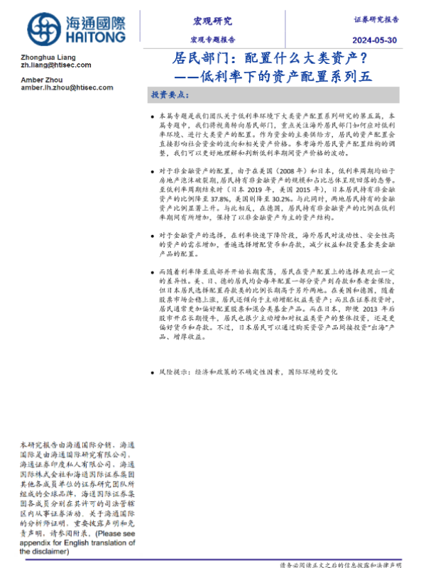 【海通国际】【20240530】低利率下的资产配置系列五:居民部门,配置什么大类资产?-30页