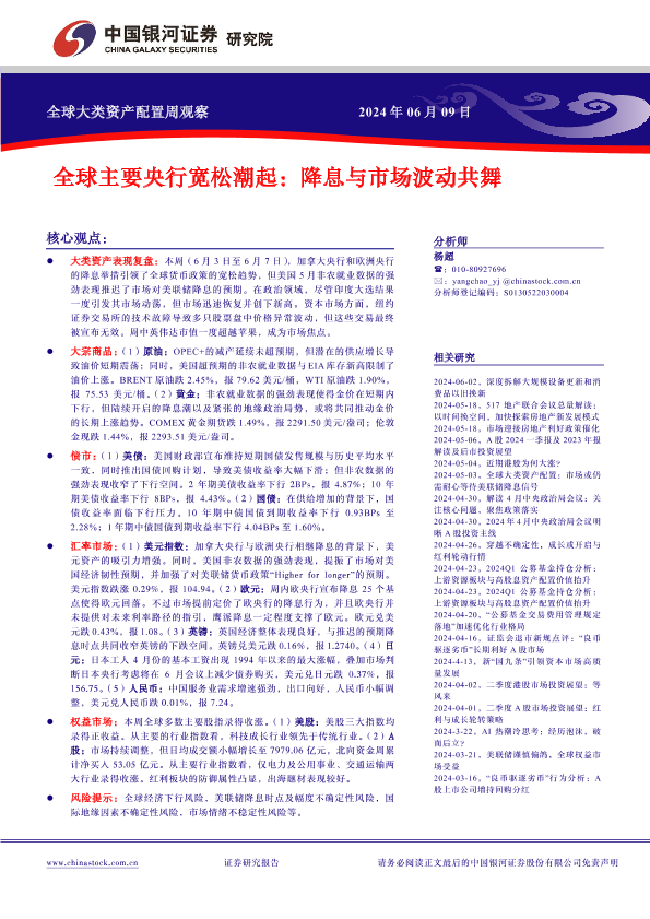 【银河证券】【20240609】全球大类资产配置观察:全球主要央行宽松潮起,降息与市场波动共舞-15页