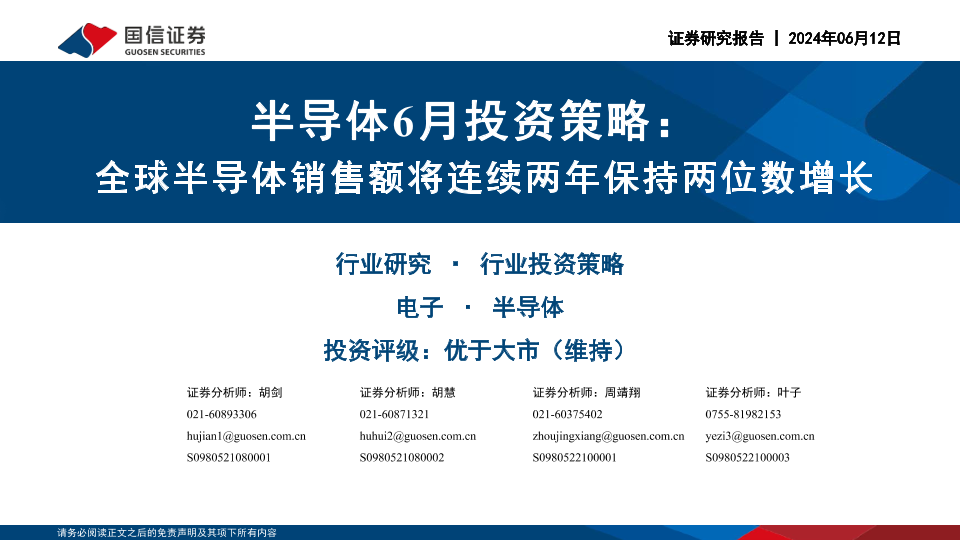 【国信证券】【20240612】半导体行业6月投资策略:全球半导体销售额将连续两年保持两位数增长-20页