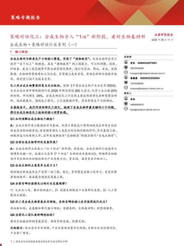 【西部证券】【20240611】合成生物·策略对话行业系列(一)-策略对话化工:合成生物步入“1-n”新阶段,看好生物基材料-13页