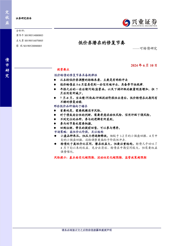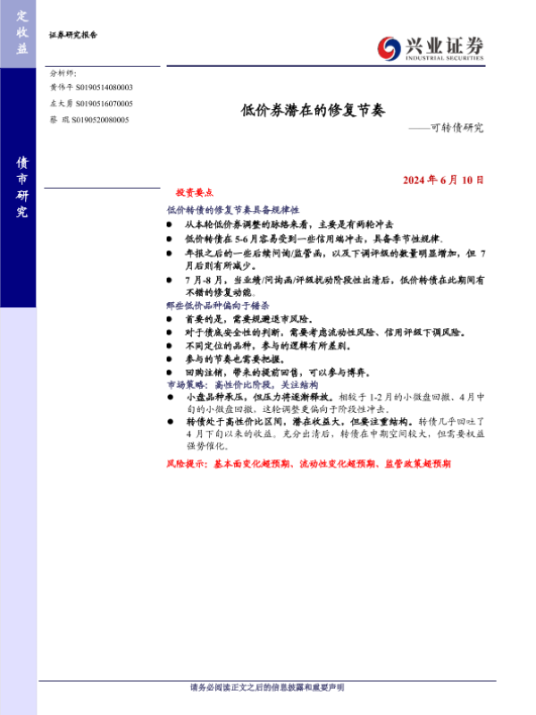 【兴业证券】【20240610】低价券潜在的修复节奏——可转债研究-12页