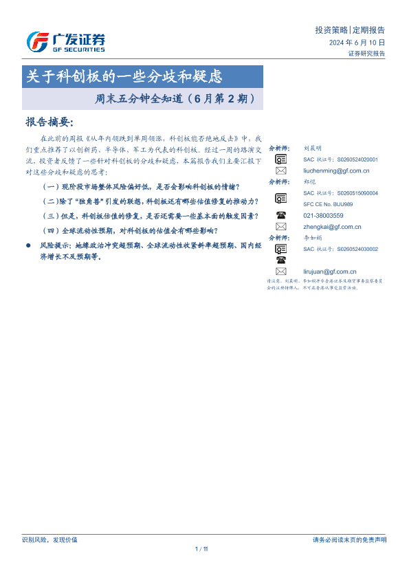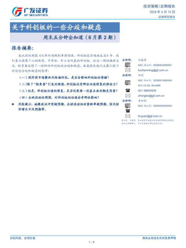 【广发证券】【20240610】周末五分钟全知道(6月第2期):关于科创板的一些分歧和疑虑-11页
