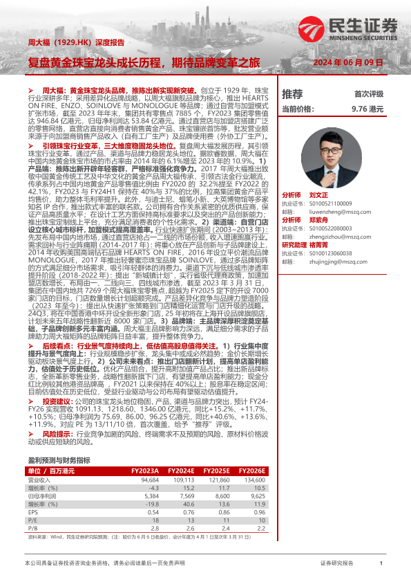 【民生证券】【20240609】周大福(1929.HK)深度报告:复盘黄金珠宝龙头成长历程,期待品牌变革之旅-36页