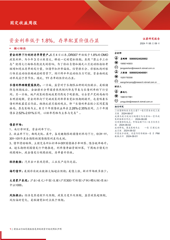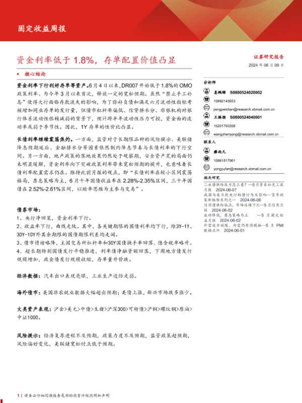 【西部证券】【20240609】固定收益:资金利率低于1.8%,存单配置价值凸显-16页
