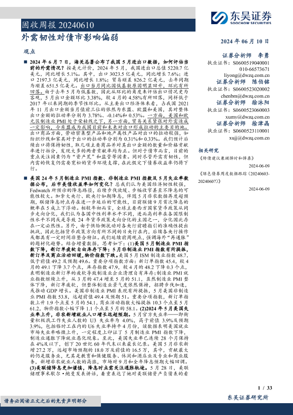 【东吴证券】【20240610】固收:外需韧性对债市影响偏弱-33页