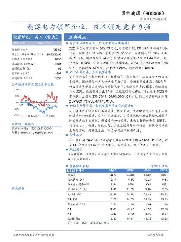 【华安证券】【20240613】国电南瑞-能源电力领军企业,技术领先竞争力强-10页
