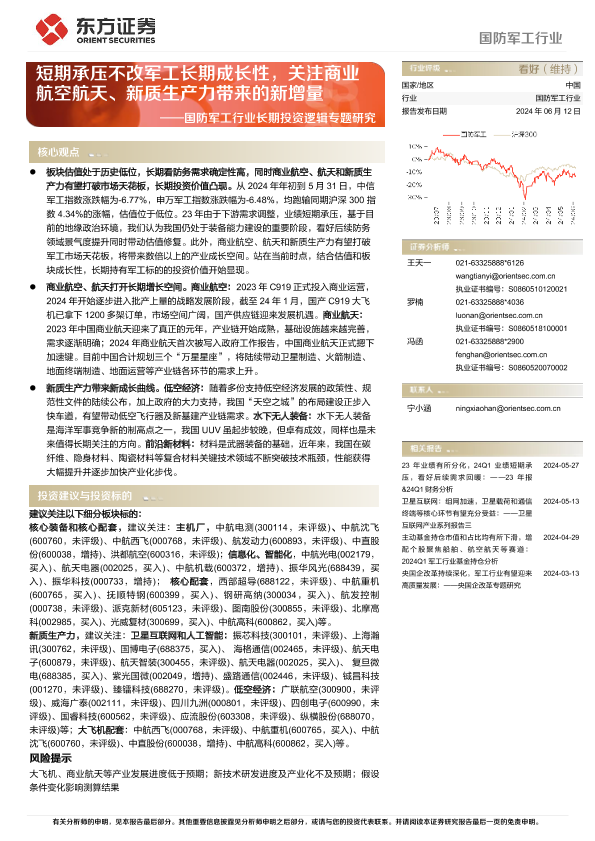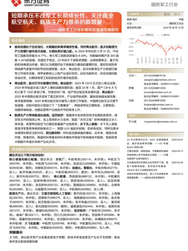 【东方证券】【20240612】国防军工行业长期投资逻辑专题研究:短期承压不改军工长期成长性,关注商业航空航天、新质生产力带来的新增量-42页
