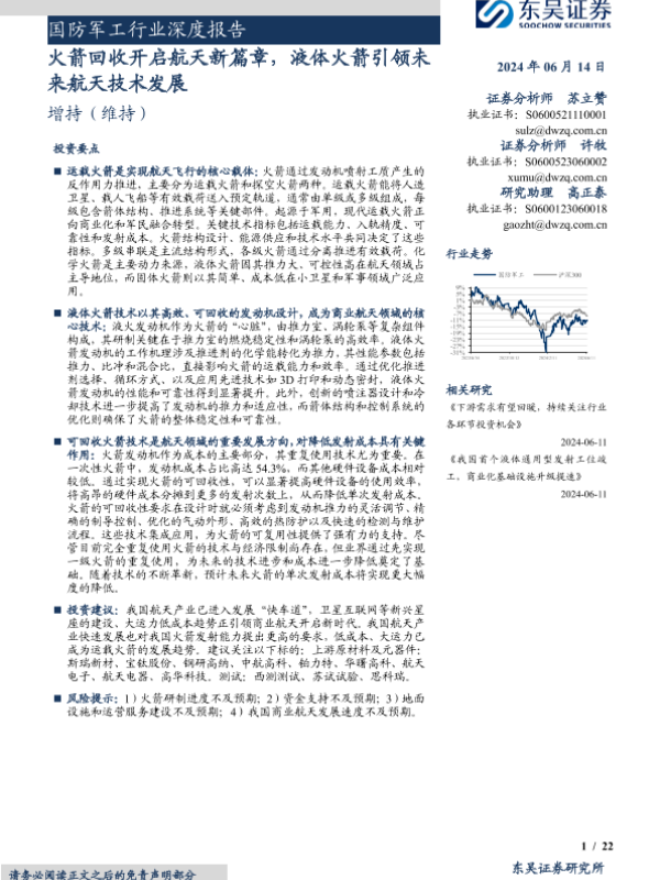 【东吴证券】【20240614】国防军工行业深度报告:火箭回收开启航天新篇章,液体火箭引领未来航天技术发展-22页
